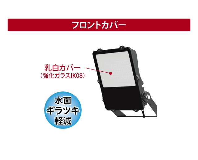 プール向けLED投光器 最終更新日時 : ミヤデン LED投光器 品番:YRS80W-SBP-B2-CRP 製品仕様 SBP-CRP series ● N:昼白色 YRS80W-SBP-B2/N-CRP 消費電力 : 80 W入力電圧 : AC 100 ~ 240 Vサイズ : 284 × 235 × 111 mm質量 : 1.85 kg設計寿命 : 50,000 h色温度 : ●N 5,000K演色性 : Ra80使用温度 : -40 ~ 50°C保護等級 : IP66照射角度 : 30° / 60° / 90° / 150°全光束参考値: ●N 12,800 lmフロントカバー: 乳白カバー(強化ガラス IK-08)電源 : 一体型製品保証 : 3 年 製品仕様書 株式会社ユアーズ・トレード「製品情報」、https:www.yrstrade.com/prodacts、(参照 2025-11)