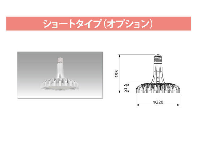 高天井用LED照明 最終更新日時 : ミヤデン 高天井用LED照明 品番:YRS60W-HB180-OD-Y 製品仕様 HB180-OD series ● N:昼白色 YRS60W-HB180-OD-Y/N 消費電力 : 60 W入力電圧 : AC 100 ~ 240 V対応口金 : E39サイズ : φ 220 × 261.5 mm質量 : 1.2 kg設計寿命 : 60,000 h色温度 : ●N 5,000K演色性 : Ra75使用温度 : -40 ~ 50°C保護等級 : IP65(口金部分除く)照射角度 : 60° / 90° / 120°全光束参考値: ●N 10,200 lm製品保証 : 5 年 製品仕様書 株式会社ユアーズ・トレード「製品情報」、https:www.yrstrade.com/prodacts、(参照 2025-11)