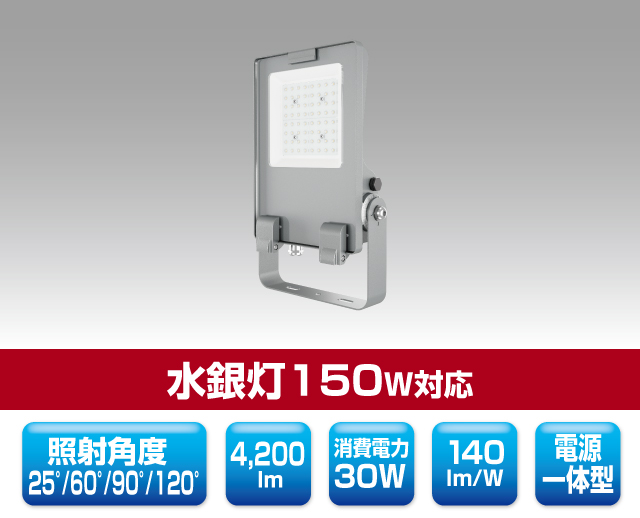 看板向けLED投光器 最終更新日時 : ミヤデン LED投光器 品番:YRS30W-SBPII-Z 製品仕様 SB-PII series ● N:昼白色 YRS30W-SBPII-Z/N 消費電力 : 30 W入力電圧 : AC 100 ~ 240 Vサイズ : 344 × 226 × 81 mm質量 : 2.3 kg設計寿命 : 50,000 h色温度 : ●N 5,000K演色性 : Ra80使用温度 : -40 ~ 50°C保護等級 : IP66配光角度 : 25° / 60° / 90° / 120°全光束参考値: ●N 4,200 lmフロントカバー: 耐衝撃性保護ガラス(IK10)電源 : 一体型製品保証 : 5 年工事保証 : 6 ヶ月 製品仕様書 株式会社ユアーズ・トレード「製品情報」、https:www.yrstrade.com/prodacts、(参照 2025-11)