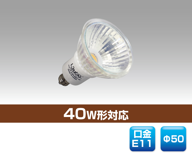背面配光40W形ハロゲンタイプLED電球 最終更新日時 : ミヤデン LED電球 品番:YRS-DS4 製品仕様 ● L:電球色 YRS-DS4/L(在庫限り) YRS-DS4/L-27(販売終了) 消費電力 : 4 W入力電圧 : AC 90 ~ 130 V対応口金 : E11サイズ : φ 50 × 66 mm質量 : 65 g設計寿命 : 40,000 h色温度 : ●L-27 2,400 K ●L-27 2,700K演色性 : Ra80使用温度 : -20 ~ 40°C照射角度 : 30°全光束参考値: 330 lm製品保証 : 3 年 製品仕様書 株式会社ユアーズ・トレード「製品情報」、https:www.yrstrade.com/prodacts、(参照 2025-11)