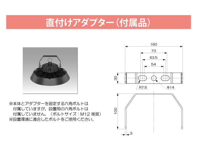 高天井用LED照明 最終更新日時 : ミヤデン 高天井用LED照明 品番:YRS300W-HBC-IS 製品仕様 HBC series ● N:昼白色 YRS300W-HBC-IS/N 消費電力 : 300 W入力電圧 : AC 100 ~ 240 Vサイズ : φ 408 × 132 mm質量 : 6.4 kg ※電源含む設計寿命 : 50,000 h色温度 : ●N 5,000K演色性 : Ra70使用温度 : -25 ~ 50°C保護等級 : IP65照射角度 : 60° / 90° / 120°全光束参考値: ●N 45,000 lm電源 : 一体型製品保証 : 5 年 製品仕様書 株式会社ユアーズ・トレード「製品情報」、https:www.yrstrade.com/prodacts、(参照 2025-11)