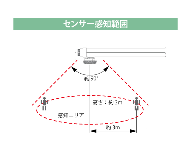 感知範囲: 角度 約 90° / 高さ 約 3 m