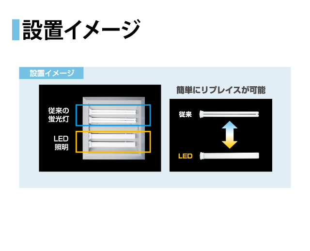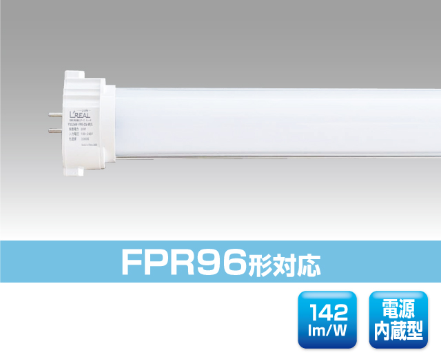 FPR96形対応 最終更新日時 : ミヤデン コンパクト蛍光灯型LED照明 品番:YRS26W-FPR-DS-W 製品仕様 PL-four series ● L:電球色 YRS26W-FPR-DS-W/L● N:昼白色 YRS26W-FPR-DS-W/N 消費電力 : 26 W入力電圧 : AC 100 ~ 240 V対応口金 : GY10qサイズ : 860 × 37 × 29 mm質量 : 350 g設計寿命 : 40,000 h色温度 : ●L 3,000 K ●N 5,000K演色性 : Ra80使用温度 : -20 ~ 40°C全光束参考値: ●L 3,400 lm ●N 3,700 lm電源 : 内蔵型CISPR : 11 , 15製品保証 : 3 年 製品仕様書 株式会社ユアーズ・トレード「製品情報」、https:www.yrstrade.com/prodacts、(参照 2025-11)